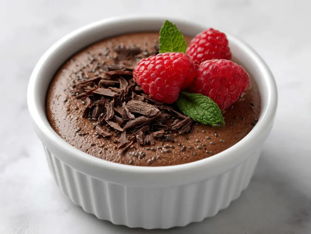Just before serving, top with your favorite healthy garnishes—think shaved dark chocolate, fresh raspberries, a dusting of cocoa powder, or a sprinkle of chopped nuts.